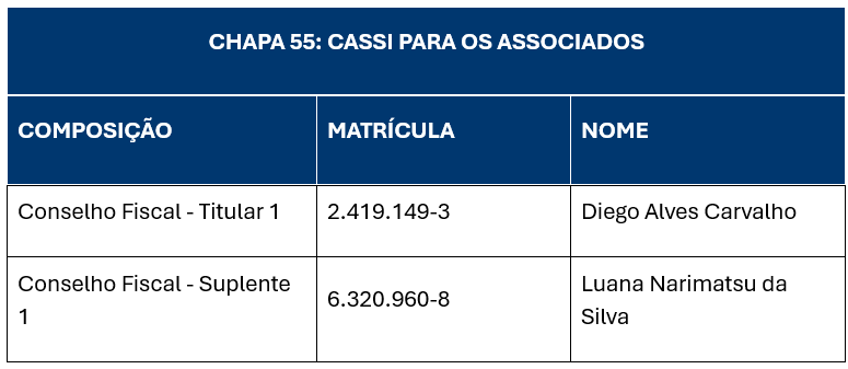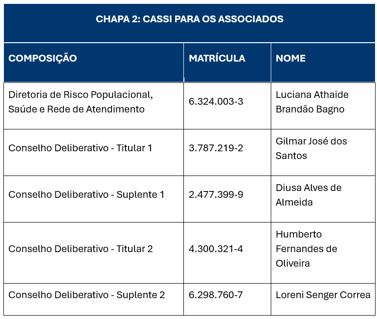 Eventuais dúvidas sobre o processo eleitoral podem ser encaminhadas para o e-mail comissaoeleitoral2026@cassi.com.br