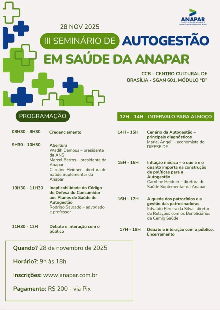 A diretora interina de Gestão da Agência Nacional de Saúde Suplementar, Carla de Figueiredo Soares, disse no seminário que a participação da ANS no seminário representa uma oportunidade fundamental para ouvir diretamente os desafios enfrentados pelas autogestões. Carla relembrou que a saúde suplementar brasileira nasceu das caixas de assistência aos trabalhadores, o que torna as autogestões o embrião do setor, muito antes da existência de regras específicas.