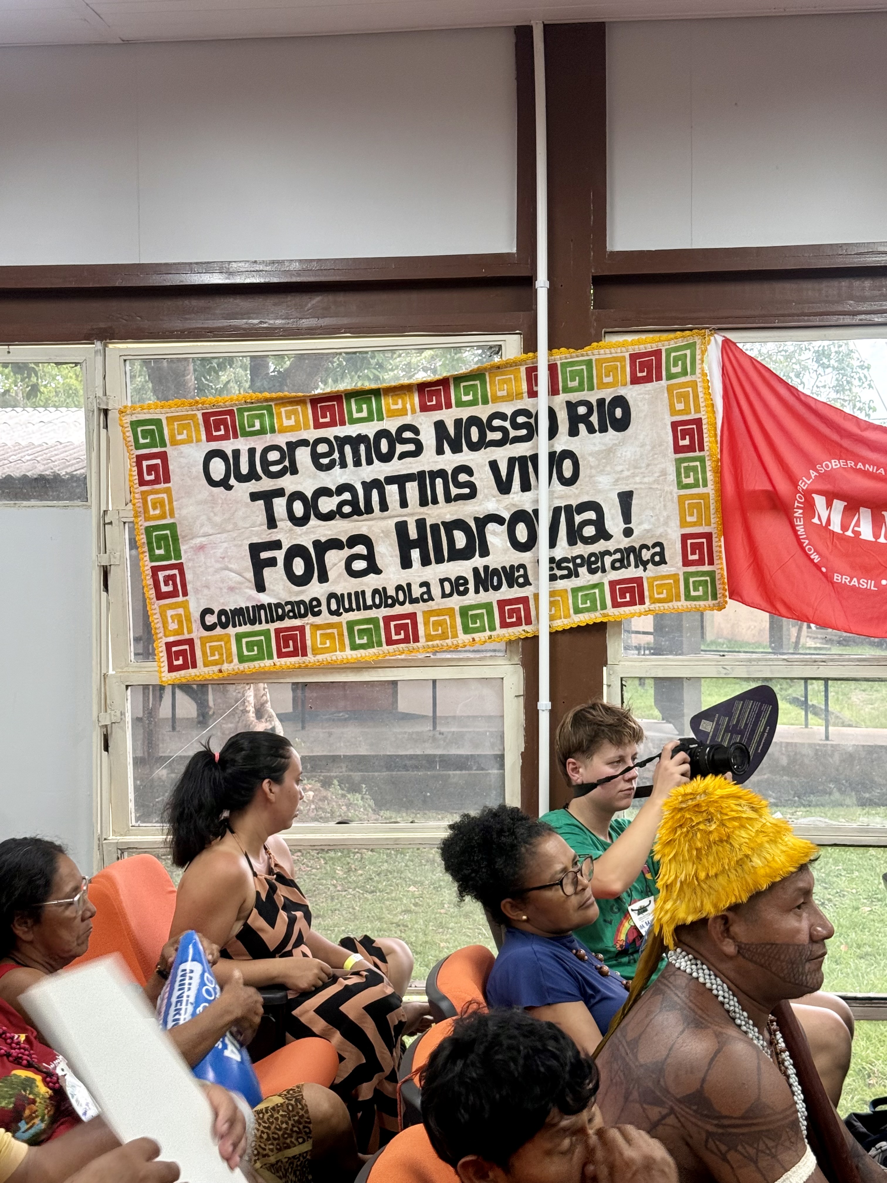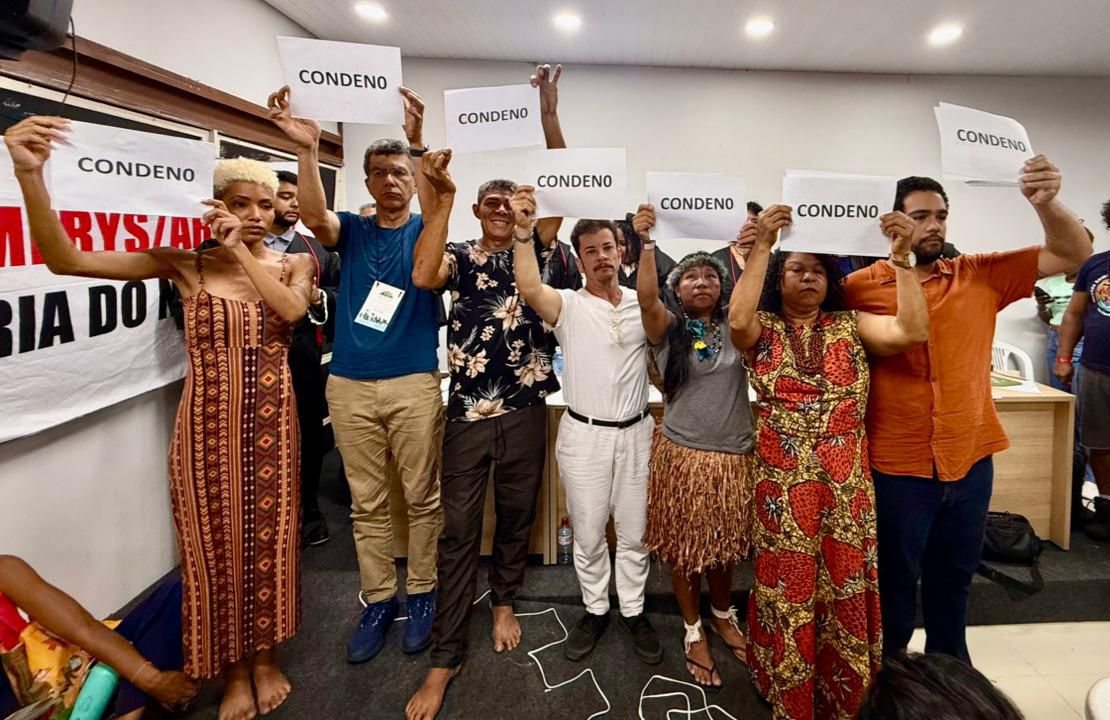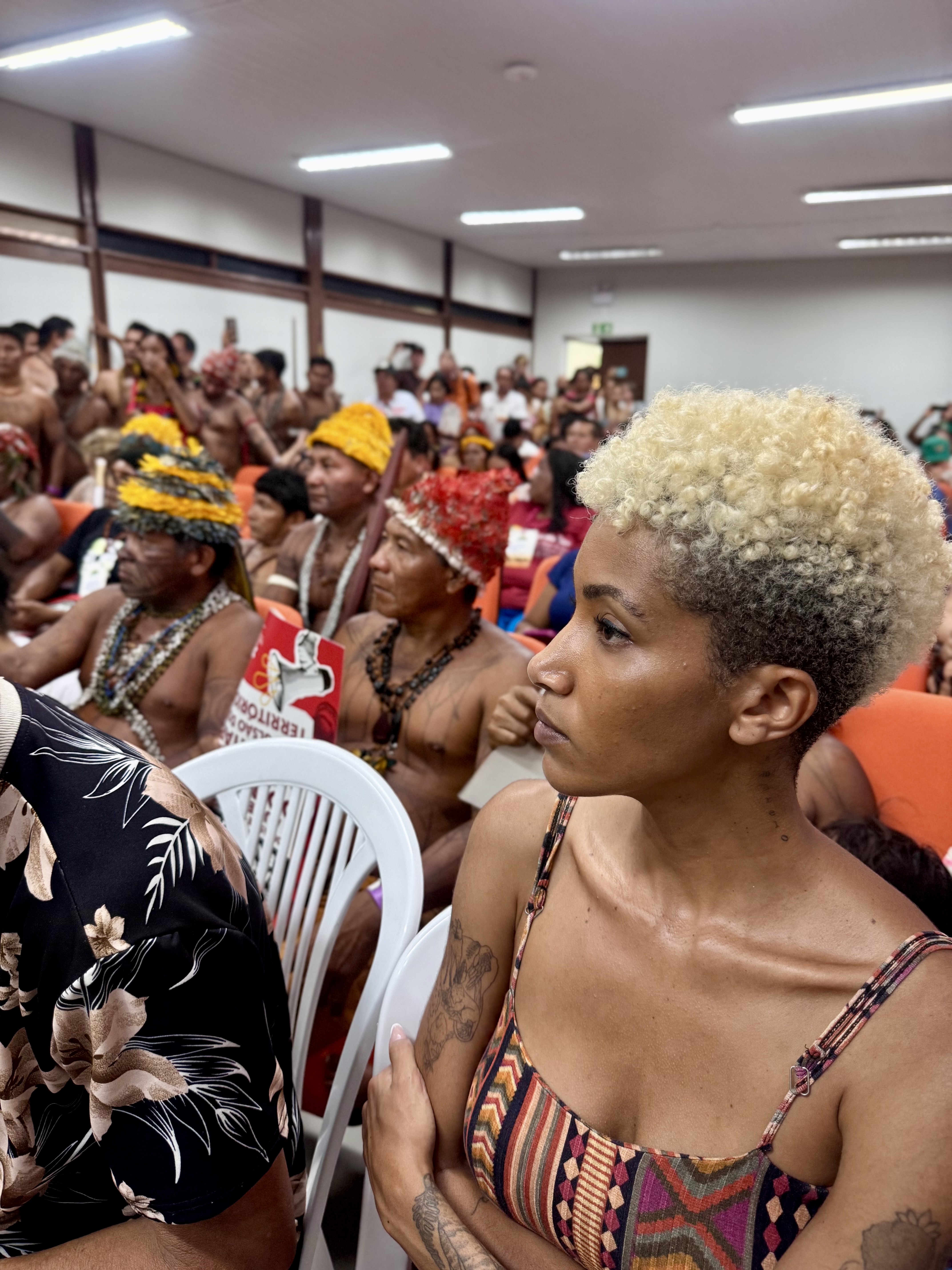 Mas a formalidade não conteve a força do público: a cada fala dos defensores das mineradoras, indígenas e quilombolas reagiam com palavras de ordem e cantos tradicionais. O auditório, preparado para cerca de 90 pessoas, recebeu quase o dobro, com participantes ocupando antessala, corredores e permanecendo de pé até o fim.