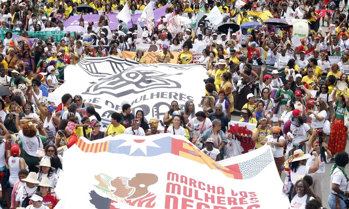 A luta por reparação, bem viver e transformação estrutural do Estado orientou a participação das mulheres negras que ocuparam Brasília nesta terça-feira (25), com a Marcha das Mulheres Negras. Em entrevista ao Conexão BdF, da Rádio Brasil de Fato, a yalorixá Adriana Ti Omolu, coordenadora nacional de mulheres do Fórum Nacional de Segurança Alimentar e Nutricional dos Povos Tradicionais de Matriz Africana, afirmou que o movimento retornou à capital do país para reafirmar que o Brasil segue operando sob os pilares da escravidão.